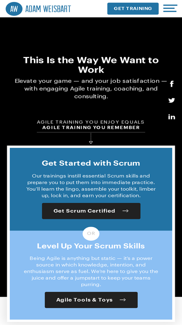 75%Compelling trainings that fully prepare participants for more than certification — walk out the door with practical, hands-on experience using Scrum.