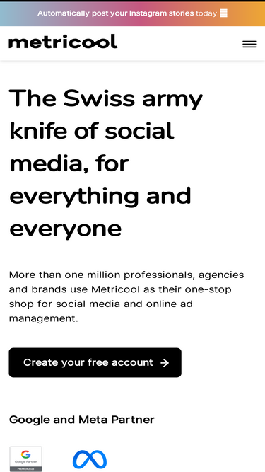 85%All in one site: web analytics, blog content, Twitter, Facebook, Instagram, publication planner, real-time and more. Finally all the information that matters in an easy and intuitive tool. Metricool is free to use for as long as you want.