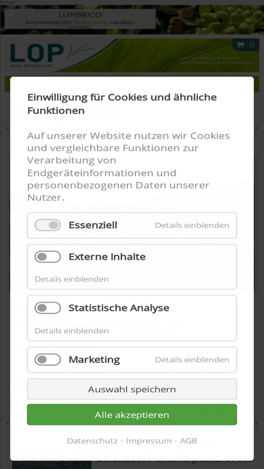 100%Lernen Sie die LOP kennen: Das Fachmagazin für konservierenden Ackerbau mit Mulch- und Direktsaatsystemen. Mit modernen Ackerbausystemen Betriebsmittel sparen und Deckungsbeiträge erhöhen Erträge schützen vor Trockenheit, Starkregen und Erosion Bodenwert langfristig steigern Seit 30 Jahren liefert die LOP fundiertes Praxiswissen für Landwirte, die effizienter arbeiten und den Wert ihres Bodens verbessern wollen. Keine Prospektinformationen, sondern Erfahrungen direkt von Praktikern zu Themen wie Direktsaat, Strip-Till, Zwischenfruchtmanagement, angepasster Technik und vielen weiteren Aspekten des modernen Ackerbaus. Sie erhalten drei Ausgaben der LOP zum Kennenlernpreis von 48,30 Euro inklusive MwSt. und Versand innerhalb Deutschlands (Ausland 53,40 Euro). Bereits über 3.000 zukunftsorientierte Leser vertrauen auf die Inhalte der LOP. Das Probeabo endet nicht automatisch. Wenn Sie nicht weiterlesen möchten, genügt eine formlose Absage bis zwei Wochen nach Erhalt der dritten Ausgabe. Andernfalls wird die LOP regulär weiter geliefert.