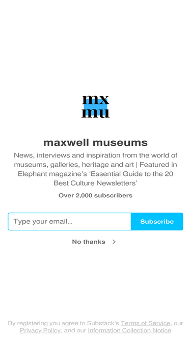 71%News, views and interviews from the world of museums, galleries, heritage and art | One of the world's "33 best Substack newsletters" according to the Observer newspaper. Click to read maxwell museums, a Substack publication with thousands of subscribers.