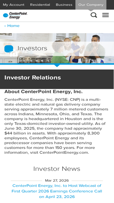80%The Investor Relations website contains information about CenterPoint Energy, Inc.,'s business for stockholders, potential investors, and financial analysts.