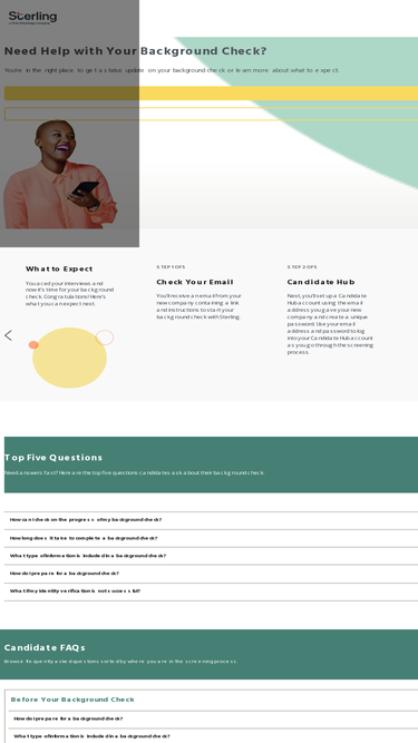 93%Trust Sterling to guide you through your background check. Get your questions answered and learn more about what to expect next.