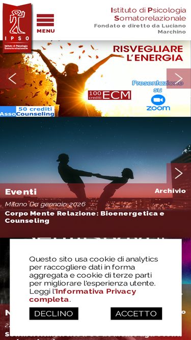 85%Master annuale in psicoterapia corporea “Il corpo in psicoterapia”, promosso dall’Istituto di Psicologia Somatorelazionale di Milano, fondato e diretto dal prof. Luciano Marchino.