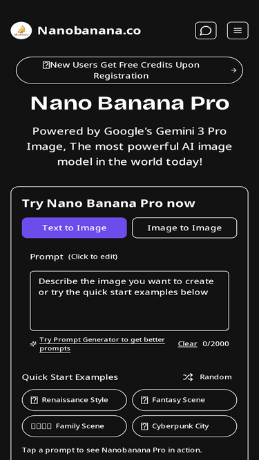 80%Transform images with Google's Gemini 3 Pro Image model. Professional AI editing with breakthrough text rendering, high-resolution output, and multi-image support.
