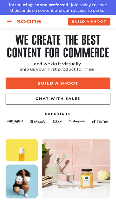 86%Create, manage, and optimize product content for all your listings and channels. 20k+ brands trust soona for product photos, UGC, and edits, from mom-and-pops to names you know.