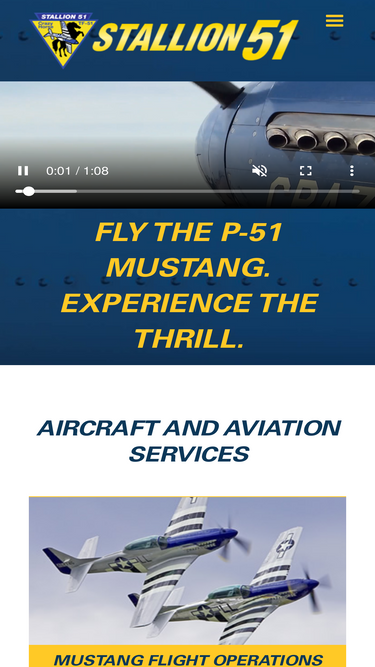 83%FLY THE P-51 MUSTANG. EXPERIENCE THE THRILL. CHECK OUT THE NEW P-51 ONLINE STORE! Unique gifts and apparel for the Mustang and aviation enthusiast. SHOP NOW AIRCRAFT AND AVIATION SERVICES Stallion 51 Corporation offers various Orientation