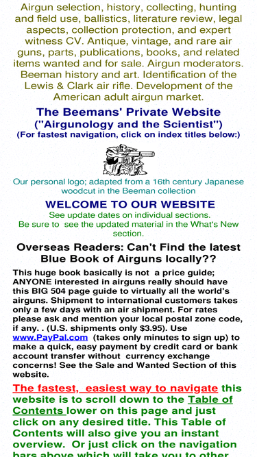 91%beemans'private website: airgun history and information, expert witness cv. airguns, parts, items, and literature for sale and reference.