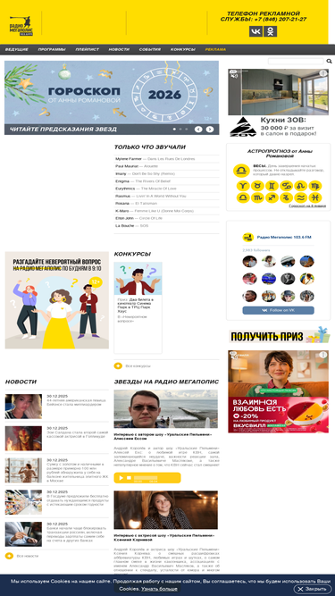 87%мегаполис - современная музыка для взрослых онлайн. г. самара, ул. партизанская, 86, оф. 425 тел: +7 (846) 207-21-27 +7 (846) 207-21-24 e-mail: reklama@radio-megapolis.ru