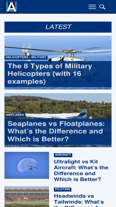 75%AeroCorner is an aviation knowledge site featuring detailed aircraft and manufacturer profiles, technical data, photo galleries, and educational tools including a comparison system and aviation glossary. The site also hosts an extensive blog with articles for pilots, travelers, and aviation enthusiasts.