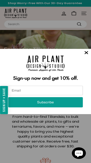 85%Air Plant Design Studio offers FREE shipping on air plant orders over $30! Flat rate of $7.99 on all tillandsia orders below $30. Shop air plants & terrariums!