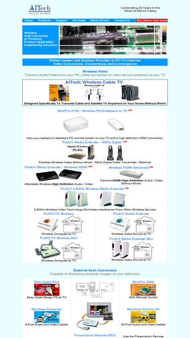 97%aitech international is the industry leader in the development and delivery of pc to tv video scan converter technology. our vga to tv scan converters enable you to use your tv as your computer display.