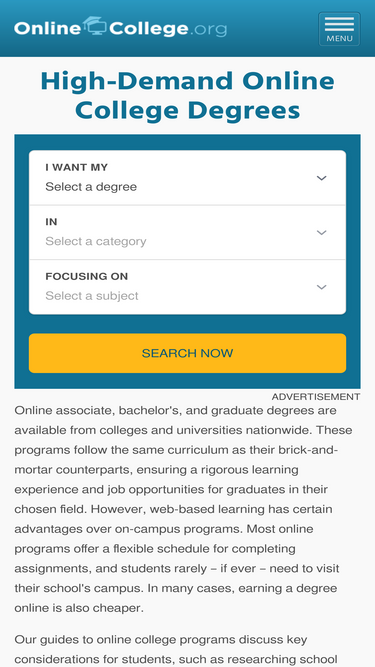 100%Earning your degree from an accredited online college can help you launch a new career, or further your current one. Browse our rankings of the best schools for psychology, business, or health sciences degrees and more. Find out what you need to get started.