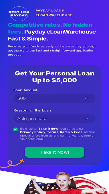 100%Compare payday loans eLoanwarehouse vs installment loans. Find the lowest interest rate lender for you. Get up to $5000. No hidden fees.