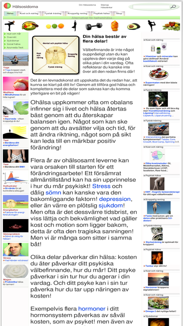 34%hälsa är något som alla kan uppnå! på hälsosidorna hittar du vägen till optimal hälsa - egenvård och helhetshälsa! hälsan för kropp och själ, inre och yttre skönhet! allt om kost och näring, fysisk träning, kroppslig rening och mental och psykisk hälsa!