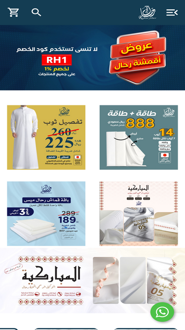 81%أقمشة رحال متجر أقمشة إلكتروني بدأت منذ العام ١٩٨٦ مختصين بالأقمشة الرجالية الفاخرة وفي مجال خياطة الثوب السعودي لتكون بيت الأناقة للرجل العربي