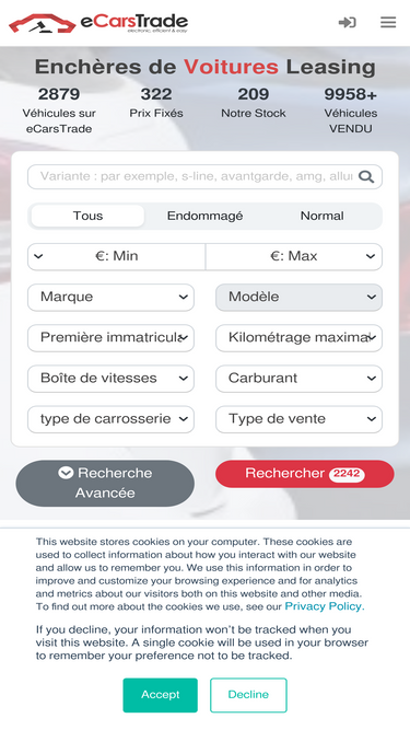 92%Le spécialiste des enchères de voitures, véhicules utilitaires et matériels d'occasion à Toulouse, Bordeaux et Marseille.