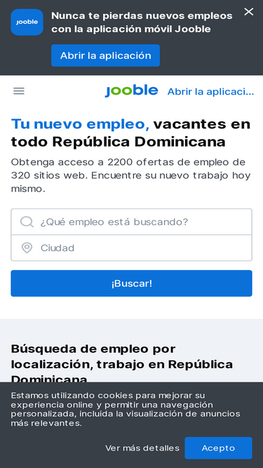 100%búsqueda de trabajo de las mejores empresas y portales de empleo en república dominicana y en el extranjero. tiempo completo, medio y parcial. información sobre empleadores. una forma rápida y fácil de encontrar el empleo de tus sueños.
