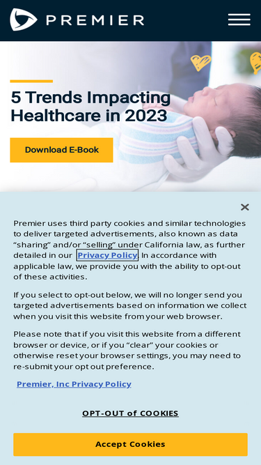 89%Technology-Driven Healthcare Performance Improvement. At Premier, we enable healthcare organizations with cutting-edge data, technology, advisory services and group purchasing to enable better, smarter and faster care.