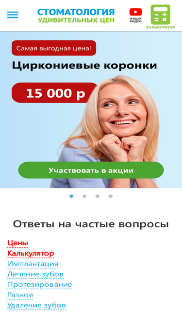 97%Стоматология Удивительных Цен - это сеть стоматологических клиник в Москве. Наша миссия - реально недорогая качественная стоматология. Работаем с 1997 года. Цены на наши услуги в 1,5-2 раза ниже средних по Москве. Врачи с большим практическим опытом, систематически повышают свою квалификацию. Материалы и инструменты от официальных дистрибьютеров торговых марок. Зуботехнических комплекс полного цикла. Наши Реквизиты ООО «Стоматология Удивительных Цен» ИНН: 7713412271 КПП: 771301001 ОГРН: 1167746215757 Фото отделения 800-летия Москвы Фото отделения на Амурской Фото отделения на Ясном Информация на сайте не является публичной офертой. Обращаем ваше внимание на то, что данный интернет-сайт, а также вся информация об услугах и ценах, предоставленная на нём, носит исключительно информационный характер и ни при каких условиях не является публичной офертой, определяемой положениями Статьи 437 Гражданского кодекса Российской Федерации. Для получения подробной информации о наличии и