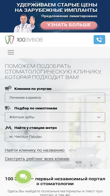 91%стоматологический портал 100zubov.ru предлагает получить актуальною информации о ценах на различные услуги и вариантов решения тех или иных стоматологических проблем. мы сотрудничаем с лучшими стоматологиями и врачами москвы, высоко ценящими качество своей работы и заботу о пациентах.