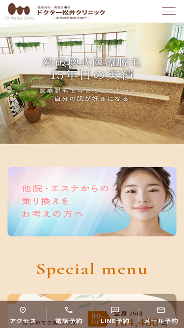 81%「医療レーザー脱毛・全身脱毛・わき脱毛」なら、東京・新宿の医療レーザー脱毛専門医院の美容外科・美容皮膚科、全身脱毛 クリニック 【ドクター松井クリニック】におまかせ下さい。TEL:0120-777-695