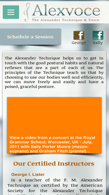 George I. Lister & Sally Porter Muro I AMSAT certified Alexander teachers/specialize in use of the vioce, walking, hiking, backpacking, back pain relief