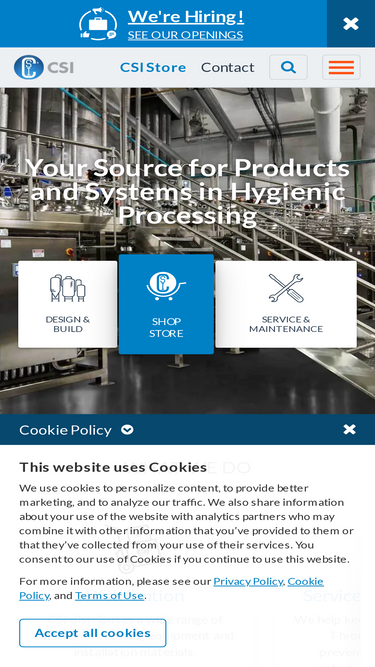 Central States Industrial (CSI) is a master distributor of equipment for sanitary processing machines and facilities. CSI is also distinguished for exceptional design, fabrication, installation, and repair of stainless steel process machinery and skidded systems including CIP systems.