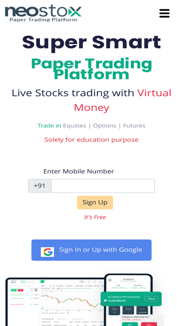 87%experience live stock trading on india's first 100% real-time platform using virtual money. test strategies, trade equities, options, and futures, and enhance your trading skills without the fear of losing money. join neostox and elevate your trading journey.