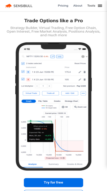 78%Trade Smarter and Faster with Sensibull, India's No.1 Options Platform. Build Strategies, Analyse Market Trends, and access Real-time data. Try it for Free!