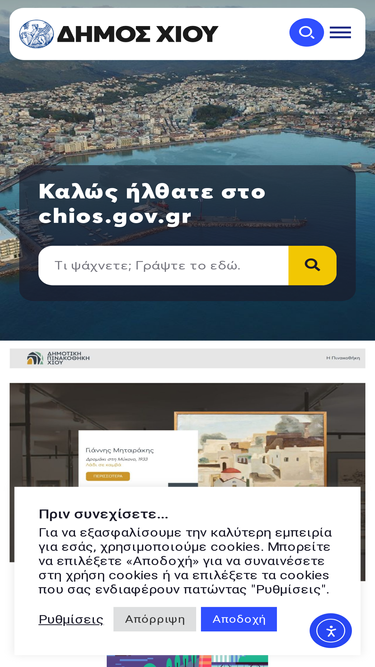 84%Καλώς ήλθατε στο chios.gov.gr ΔΗΜΟΤΙΚΕΣ ΥΠΗΡΕΣΙΕΣ Μάθετε τους τρόπους με τους οποίους μπορούμε να σας εξυπηρετήσουμε. ΚΕΝΤΡΟ ΕΞΥΠΗΡΕΤΗΣΗΣ ΤΟΥ ΔΗΜΟΤΗ Δηλώστε ένα πρόβλημα, εύκολα και σίγουρα. ΤΟΥΡΙΣΤΙΚΟΣ ΟΔΗΓΟΣ Επισκεφθείτε την ιστοσελίδα chios.gr για περισσότερες τουριστικές πληροφορίες. Ξεχωρίζουν τώρα στο chios.gov.gr Πλατφόρμας Συμμετοχής (ΠΛαΣ) Τοπικού Πολεοδομικού Σχεδίου (ΤΠΣ) Χίου, Ηρωικής Νήσου Ψαρών & Οινουσσών Δημόσια Διαβούλευση […]