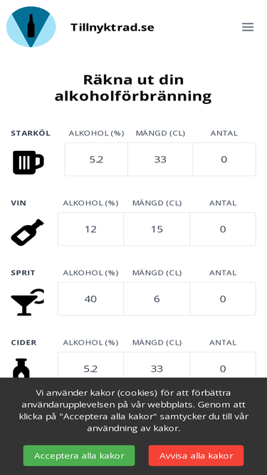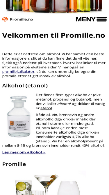 100%en nettside med informasjon om promille og alkohol, promillekalkulator, bakrus og promillegrenser.
