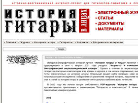 87%историко-биографический проект для гитаристов-любителей и профессионалов. электронный журнал история гитары в лицах, статьи, биографии, документы и материалы о гитаристах и историках гитары