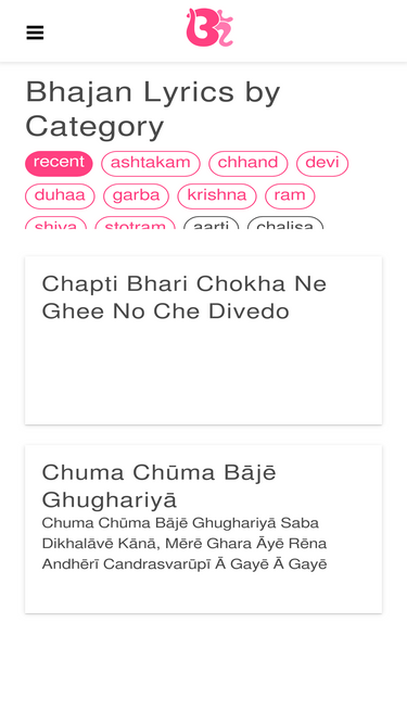 Bhajan Sangrah is a Lyrical Devotional app. Where you can read bhajan, aarti from a large collection of lyrics. You can search for your favourite Aarti, Mantra, Bhajan or go through your favourite categories. Get all the latest Lyrics here and keep reading every day.