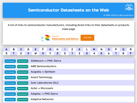 79%a list of links to semiconductor manufacturers beginning with 'a', including direct links to their datasheets index page