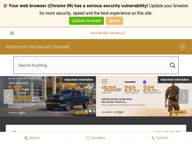 97%for chevy sales and service in pensacola, fl, visit pete moore chevrolet. our local chevy dealer can help you buy a new chevy or schedule auto service.