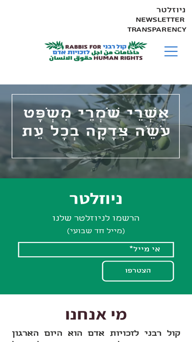 نبذة عنّا يعتبر الصوت الحاخامي لحقوق الإنسان المنظمة الوحيدة في إسرائيل التي تعبّر عن صوت الموروث اليهوديّ في مجال حقوق الإنسان. رؤيتنا الصوت الحاخامي لحقوق الإنسان هو صوت الموروث اليهوديّ في مجال حقوق الإنسان. تأسست المنظمة عام (1988) وتضم حاليًا أكثر من مائة وسبعين عضوًاة – طلاب وحاخامات مؤهلّون. لم تؤسس المنظمة على أساس حزبيّ، […]