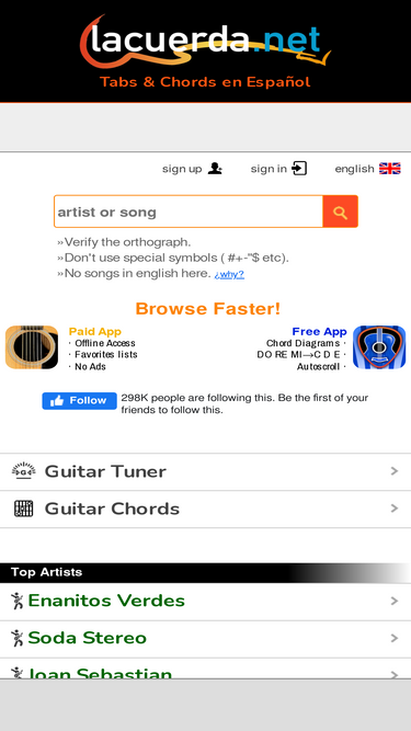 75%lacuerda.net: letras, tablaturas y acordes de guitarra acústica y eléctrica en español.