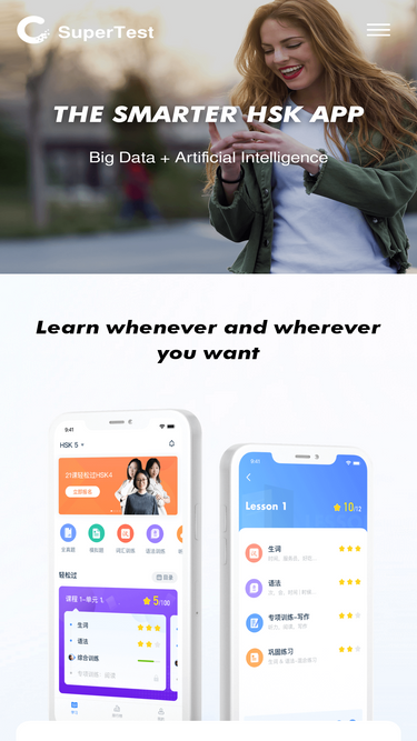 85%supertest is an intelligent platform of online learning for people who are preparing for the chinese proficiency test. it can help students successfully pass hsk tests (1-6) and get high scores. the platform covers chinese proficiency tests, previous tests exercises, model tests papers, hsk vocabulary exercises, hsk special exercises, hsk preparation guides and other practical functions.
