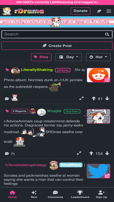 76%rDrama - rdrama.net caters to drama in all forms such as: Real life, videos, photos, gossip, rumors, news sites, Reddit, and Beyond™. There isn't drama we won't touch, and we want it all!