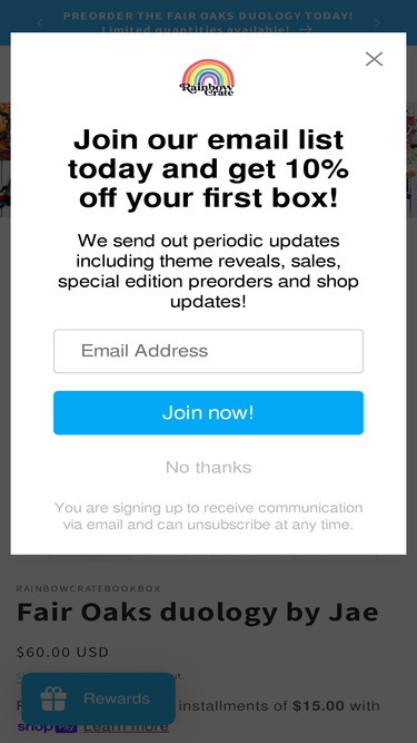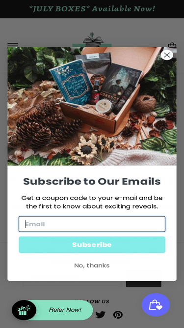 95%Finally, a Canadian Book Box just for you! Delivering quarterly boxes filled with romance, dark romance, fantasy, and more. Enjoy curated indulgent gifts, book swag, and handmade items that celebrate Canadian craftsmanship. Perfect for book lovers looking for a unique and delightful reading experience.