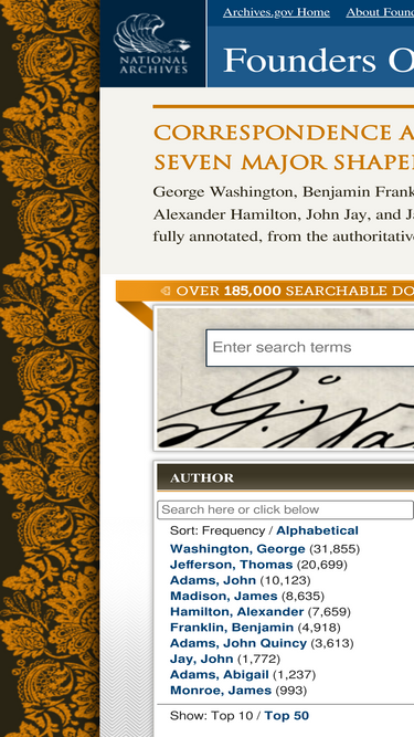 90%founders online: correspondence and other writings of seven major shapers of the united states (george washington, benjamin franklin, john adams, thomas jefferson, alexander hamilton, john jay, james madison)