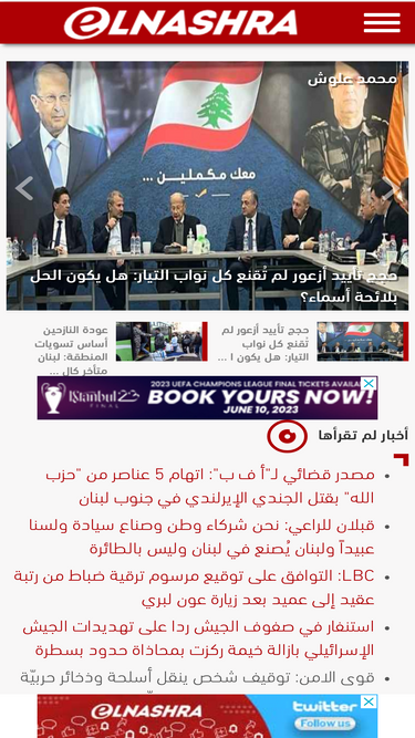 63%النشرة: جريدة إلكترونية مستقلة ترصد جميع الأخبار السياسية، الفنية والرياضية في لبنان والشرق الأوسط، بالاضافة إلى تحليل الاحداث الدولية والمحلية ومواقف الشخصيات
