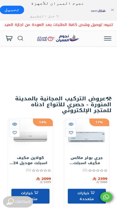 89%شركة نجوم العمران من أكبر الشركات التي أنطلقت في المملكة العربية السعودية، حيث تعمل في مجال بيع وتوزيع وتركيب وتشغيل المكيفات بجميع أنواعها، بالإضافة إلى جميع أعمال مقاولات التكييف والأجهزة المنزلية الإلكترونية للأكترونيات. نتميز بجودتنا العالية وخدمة العملاء ما بعد البيع، ونقدم أسعاراً تنافسية.