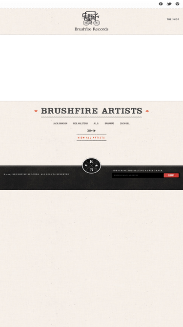 100%brushfire records, formerly the moonshine conspiracy records, started as the new music component of woodshed films. woodshed films is a surf film collaborative formed by jack johnson, emmett malloy, and chris malloy in 1998 during the creation of their surf film thicker than water. brushfire records was created in 2002 when johnson along with his wife, kim and emmett malloy, wanted to create their own record label to put out the soundtracks for these surf films and future music releases.
