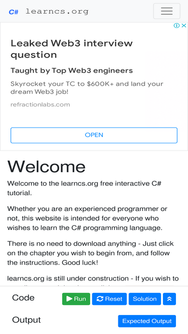 learncs.org is a free interactive c# tutorial for people who want to learn c#, fast.