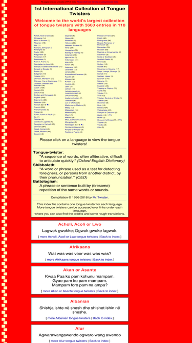 80%tongue twisters from the world's largest collection of tongue twisters (many with english translations).