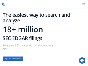 85%sec filings search api to access all filings in edgar. real-time filing stream api. full-text search api. download filings api. extract sections from sec filings. financial statements to excel. export filings as pdf. supports python, node.js, c++. all filing types available: 10-q, 10-k, 8-k, 4, s-1