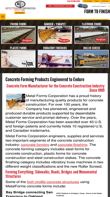 100%Concrete Forms Manufacturer providing concrete paving forms, curb and gutter forms, concrete material handling products, and Speed Screed® for concrete finishing Call Metal Forms Corporation