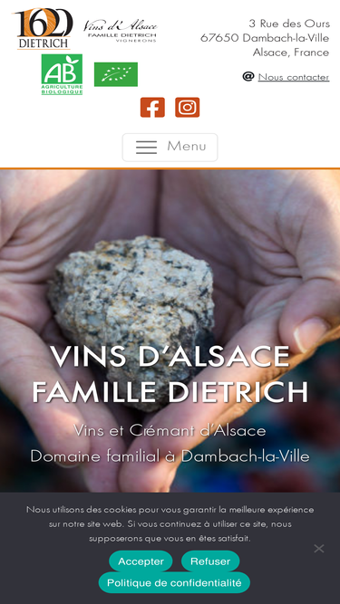 62%Famille Dietrich - Vigneron Indépendant3, rue des Ours67650 Dambach-la-VilleTel : +33 (0)3 90 56 99 23 / +33 (0)6 80 77 17 18famille@vins-dietrich.com