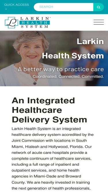 Larkin Health System is an integrated healthcare delivery system accredited by the Joint Commission with locations in South Miami, Hialeah and Hollywood, Florida.